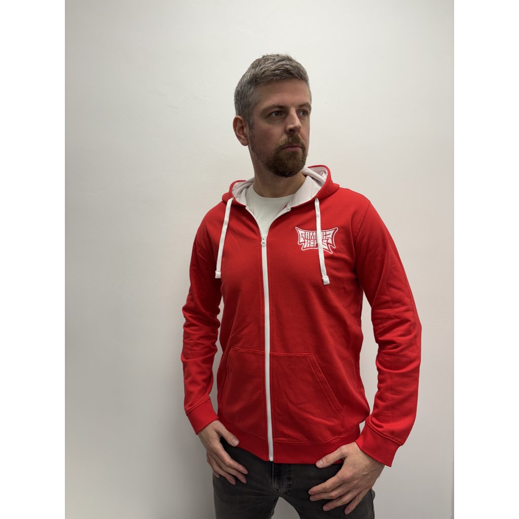 mikina na zip s kapucí červeno-bílá s vyšívaným logem Gambrz reprs